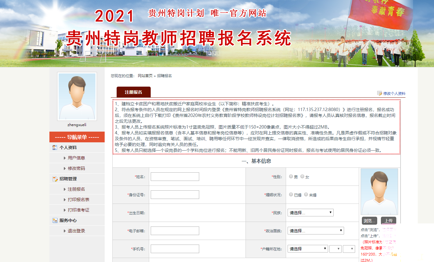 先熟悉信息界面,了解需要填写哪些信息,等待2021年贵州特岗教师招聘方案发布后,可在规定时间内直接登录报名。