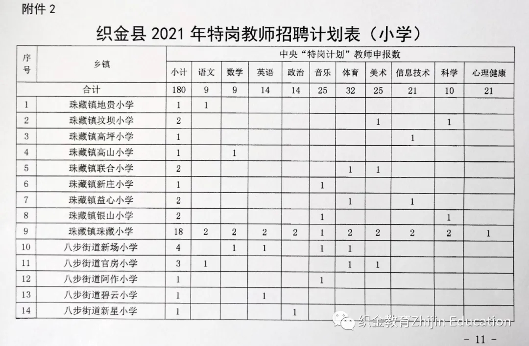 2.织金县2021年“特岗计划”教师计划表(小学)