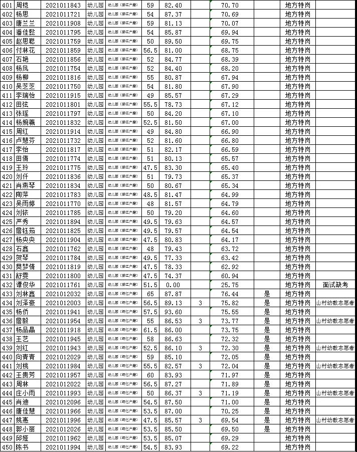 附件:碧江区2021年特岗教师招聘考试成绩及进入体检人员公示