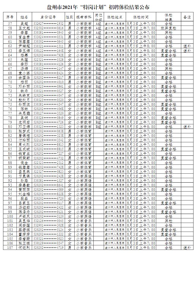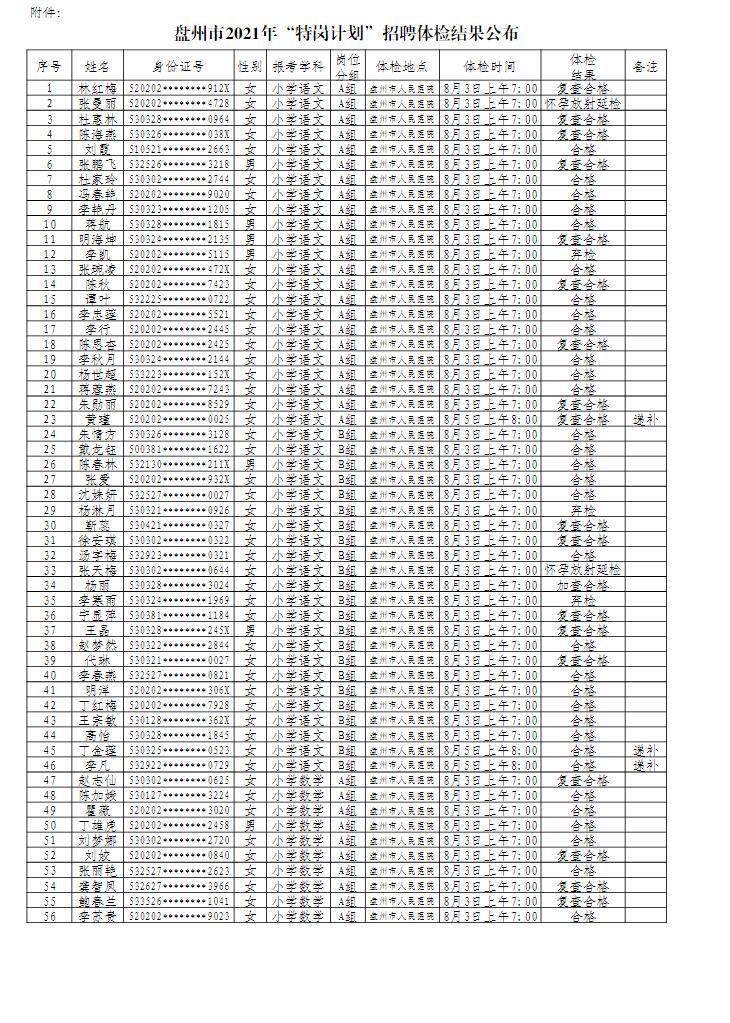 附件:盘州市2021年“特岗计划”招聘体检结果