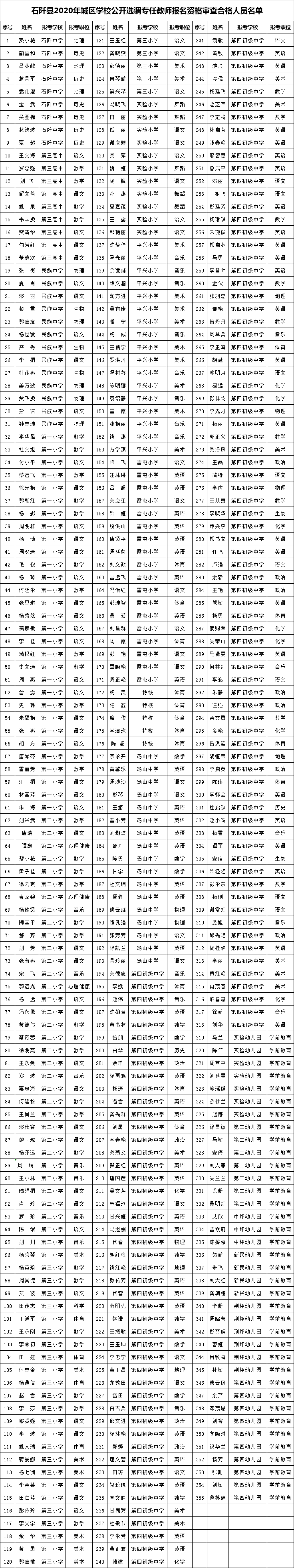 石阡县2020年城区学校公开选调专任教师报名资格审查合格人员名单公示