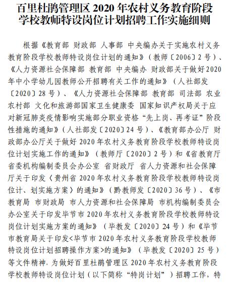 信息来源:百里杜鹃管理区2020年农村义务教育阶段学校教师特设岗位计划招聘实施细则.pdf