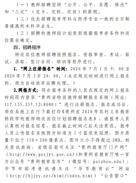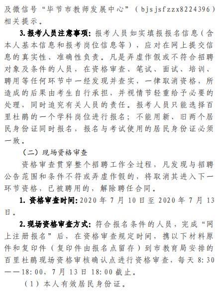 2020年贵州毕节市百里杜鹃特岗教师招聘实施方案(60名|7.1-7.3报名)